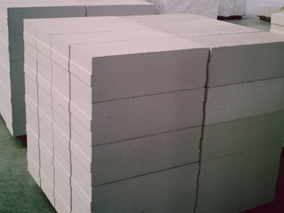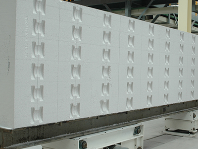 The moulds are then pre-cured in a heated environment for 18-24 hours. The resulting semi-solid material, still in a green state, is then transported to a cutting machine where it is sliced into panels of desired sizes. Subsequently, the sliced panels or blocks undergo steam pressure curing in autoclaves for up to 12 hours where the final hydration of the cementitious mix occurs.