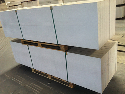 The moulds are then pre-cured in a heated environment for 18-24 hours.  The resulting semi-solid material, still in a green state, is then transported to a cutting machine where it is sliced into panels of desired sizes.  Subsequently, the sliced panels or blocks undergo steam pressure curing in autoclaves for up to 12 hours where the final hydration of the cementitious mix occurs.